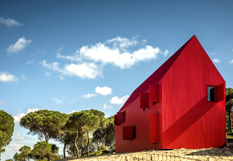 木屋的形狀和顏色設(shè)計(jì)主要是為了模糊外部和內(nèi)部空間之間界限。木屋的設(shè)計(jì)旨在提供一個(gè)...